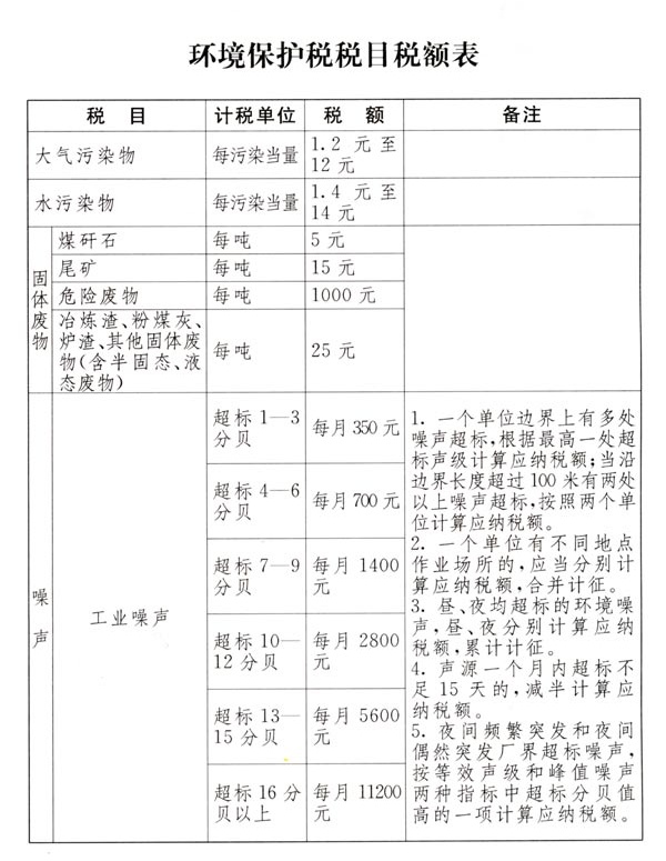 环境保护税税目税额表